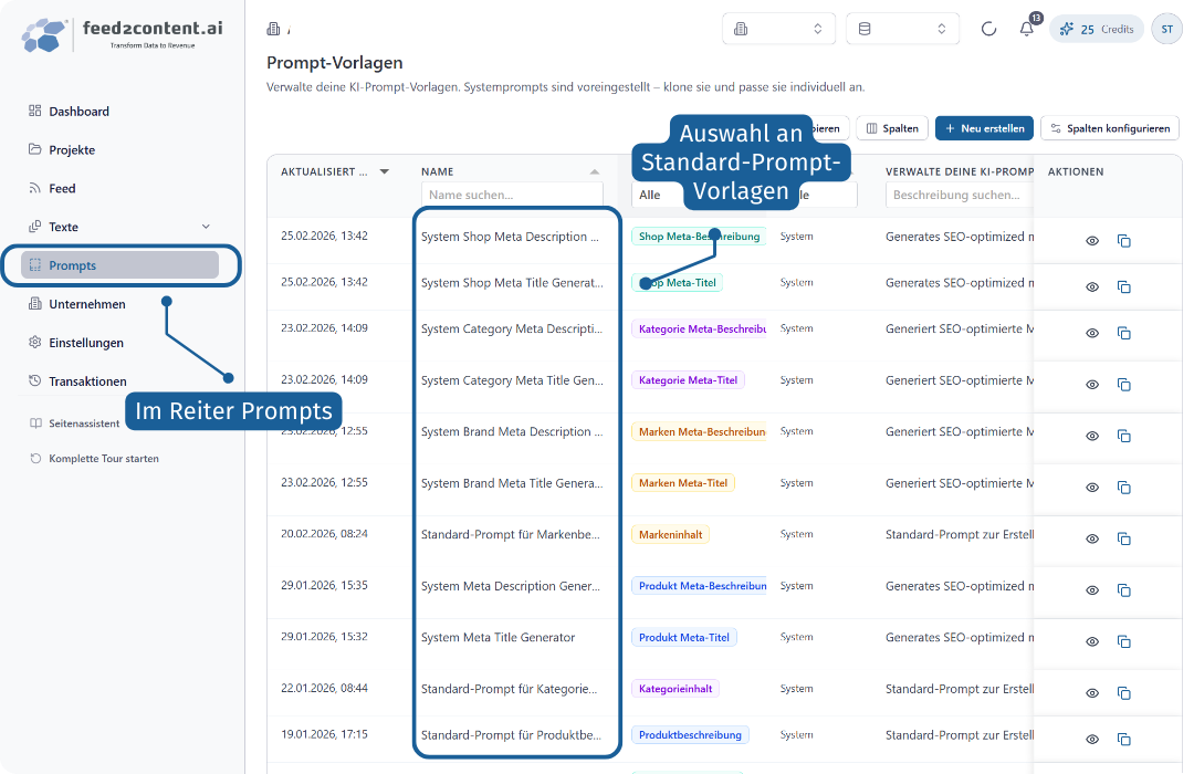 2. Schritt-für-Schritt: Produkttexte mit feed2content.ai® erstellen