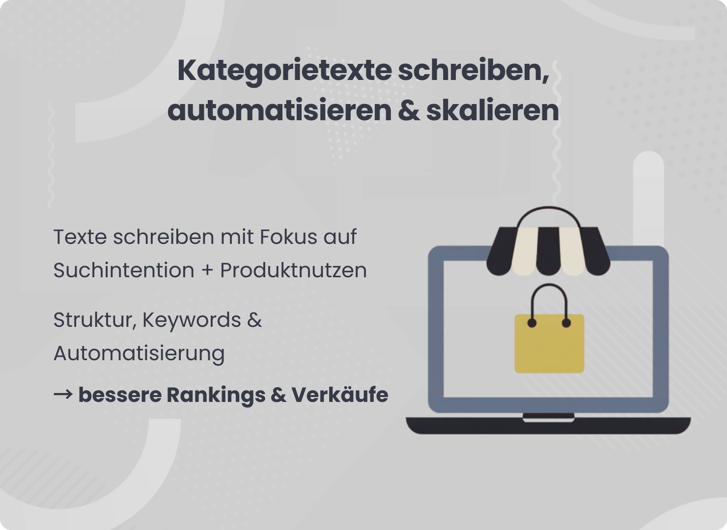Shop-Kategorietexte sind ein zentraler Hebel im E-Commerce: Sie beeinflussen Rankings, Conversion und Markenwahrnehmung. In diesem Ratgeber lernst du, wie du SEO-starke Kategorietexte strategisch aufbaust und aus Produktdaten skalierbar erzeugst – optimiert für Nutzer, Suchmaschinen und KI-Suchen.