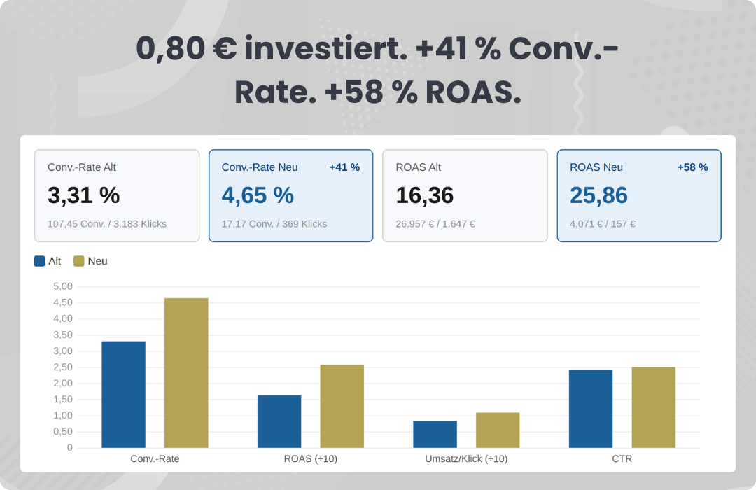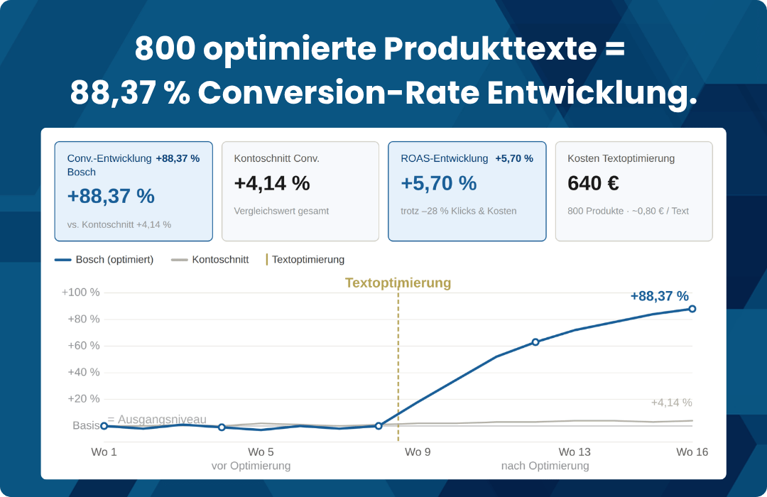 ✓ Echte Daten zu Ranking-, Conversion- und ROAS-Steigerungen aus der Praxis.